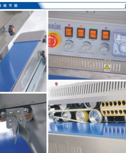 เครื่องซีลสายพานต่อเนื่อง รุ่น FRBM-810ll แบบแนวตั้ง มีชุดพิมพ์วันที่ในตัว หรือเรียกได้อีกหลายอย่าง เช่น เครื่องซีลถุง เครื่องซีลปากถุง เครื่องปิดปากถุง เครื่องซีลถุงพลาสติก แต่จะแตกต่างกับเครื่องซีลถุง แบบมือกด หรือ แบบเท้าเหยียบ ตรงที่มีระบบสายพาน สำหรับจัดวางสินค้า เหมาะสำหรับงานที่ต้องการความรวดเร็วในการทำงาน รุ่นแนวตั้งเหมาะกับสินค้าที่มีลักษณะเป็นของเหลว หรือเป็นผงที่สามารถไหลออกจากปากถุงได้หากวางในแนวนอน แตกต่างจากรุ่น FRB-770 ตรงที่มีชุดพิมพ์วันที่มากับเครื่องเลย โดยจะทำการพิมพ์วันที่ลงบนรอยซีล สามารถกำหนดเป็นวันผลิต วันหมดอายุ การใช้งานง่าย ไม่ยุ่งยากซับซ้อน มีฟังก์ชันหยุดการทำงานฉุกเฉิน เพิ่มความสะดวกในการทำงาน สามารถเปิดใช้งานติดต่อกันได้นานทั้งวัน โดยไม่เปลืองไฟ สินค้ารับประกัน 1 ปี ยกเว้นอะไหล่สิ้นเปลือง เช่น สายพานตีนตะขาบ,สายพานเทปลอน ฯ