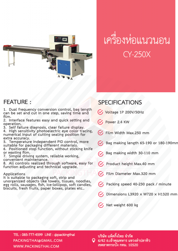 เครื่องบรรจุแนวนอน – เครื่องห่อแนวนอน รุ่น CY-250X