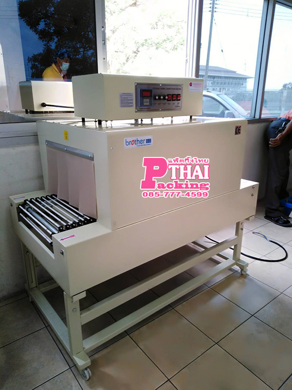 เครื่องอบฟิล์มหด จะมาในลักษณะรูปทรงแบบตั้งพื้น มีล้อเลื่อน ซึ่งเป็นรูปทรงมาตรฐาน จะสังเกตเห็นว่า รุ่นเริ่มต้นนั้น สายพานรองรับสินค้า จะเป็นแบบโรลเลอร์ ซึ่งเครื่องรุ่นนี้ จะเป็นยี่ห้อ Brother อุโมงค์ความร้อน ซึ่งมีฮีตเตอร์ความร้อน แบบอินฟาเรด ด้านข้าง และด้านล่าง มีพัดลมกระจายความร้อนอยู่ด้านบนของอุโมงค์